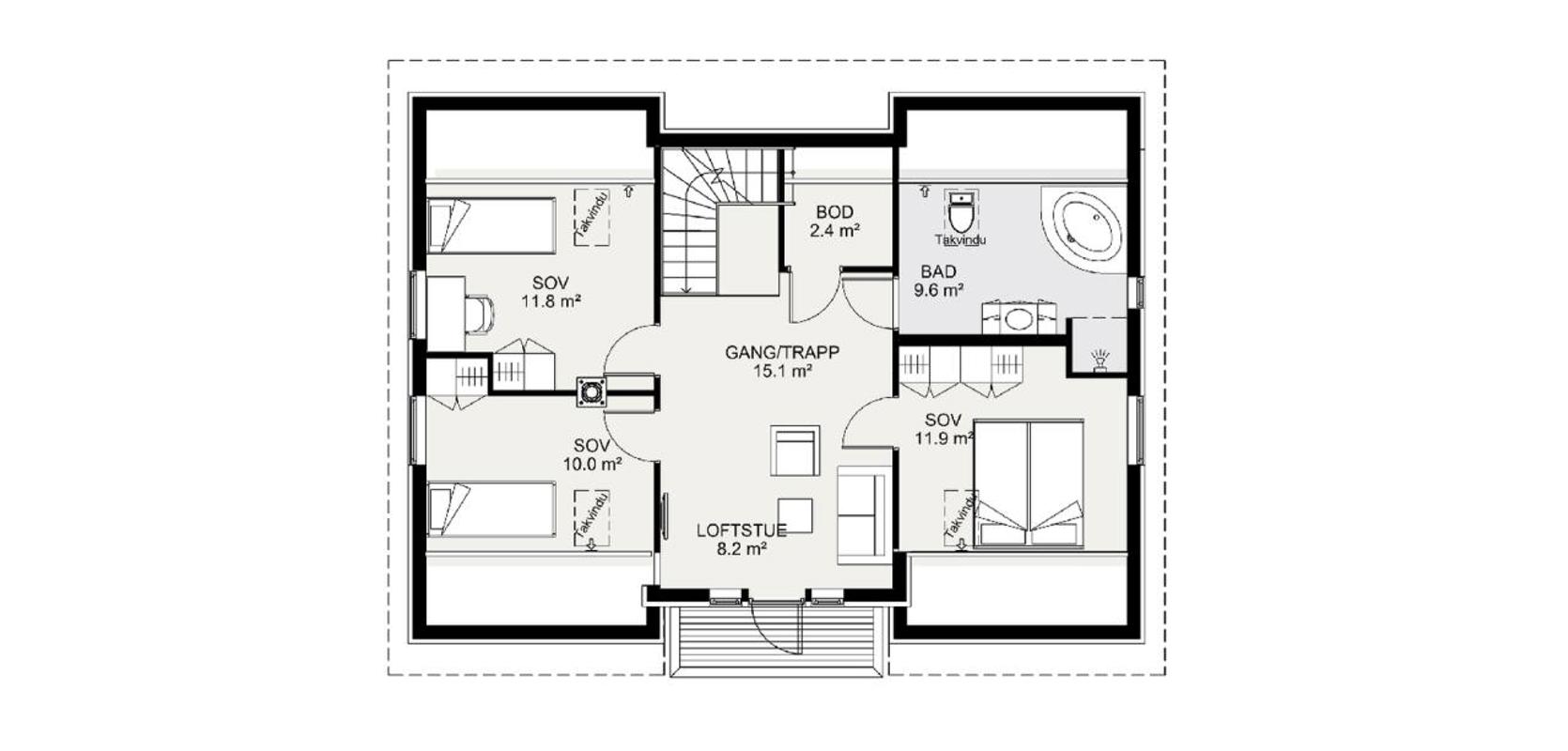 Med sine 150 kvadratmeter har huset en svært praktisk planløsning, med fire soverom, to bad og en romslig hall. Det er rikelig med plass til en stor familie. Gjennom årene har huset blitt forbedret basert på verdifulle råd og tilbakemeldinger fra våre kunder.